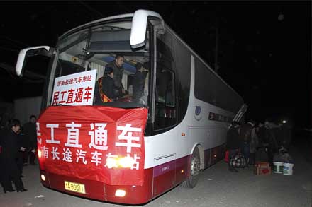 122日,,,,,,汽车东站发出春运第一辆“民工直通车”,,,,,,十六里河修建工地的30多名农民工朋侪不出事情园地,,,,,,直接坐上了返回家乡安徽池州的直达班车。。。。。为做好这次直通车营运,东站提前做好周密详尽的事情妄想,,,,,,对车辆的审核、清静检查、清静器械的设置和驾驶员资质都做了严酷要求,,,,,,同时车上还配备了抢救药箱等应急物品,,,,,,确保农民工朋侪平安顺遂返乡。。。。。2014年春运,,,,,,汽车东站准备了十余辆班车待命,,,,,,并通过联系市内各修建工地,,,,,,妄想开出“民工直通车”20班,,,,,,切实资助农民工朋侪顺遂返乡。。。。。