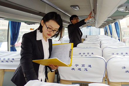 同时,,,,,,为做好“五.一”时代的清静运营事情,,,,,,济宇高速对所有营运车辆举行了一次临检,,,,,,对轮胎、灯光、雨刷、GPS纪录仪、三角警示牌、灭火器、防滑链及车辆的刹车性能等方面,,,,,,在原逐日例检的基础上又举行了统一检测,,,,,,确保装备完好有用。。。。质量督导科还对进场车辆举行督察,,,,,,通过层层把关,,,,,,确保了每部出队车辆均能够抵达清静例检及格、手续完整、车体七净一亮、设施利便完好。。。。每个出车驾驶员形象整齐老练、效劳热心、驾驶手艺过硬。。。。